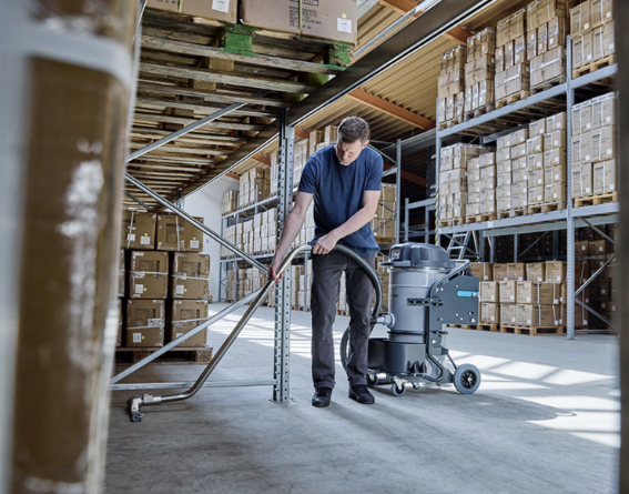 Für die punktuelle Reinigung in stark frequentierten Lagerbereichen ist der neue, batteriebetriebene Industriesauger VHB120 die erste Wahl. Sein kompaktes Design macht ihn zum wendigen Helfer in engen Gängen und schwer zugänglichen Bereichen, während ein geringes Gewicht von 72 Kilogramm den schnellen Transport zum Einsatzort erlaubt. Das kabellose Design unterstreicht nicht nur die Flexibilität in der täglichen Anwendung, sondern eliminiert zudem das Risiko gefährlicher Stolperfallen. Ergonomie bietet der neue VHB120 auch bei der intuitiven Einrichtung, Bedienung und Wartung des Geräts. So lässt sich der Industriesauger per Bluetooth starten und garantiert mit seinen Lithium-Ionen-Batterien bis zu 120 Minuten unterbrechungsfreie Laufzeit. Ein einfacher Hot-Swap-Mechanismus stellt den effizienten Batteriewechsel sicher, sodass die Maschine im Handumdrehen wieder einsatzbereit ist. Das externe Ladegerät liefert 90 Prozent Ladung in weniger als 2 Stunden und sorgt somit für effiziente Produktivität. Während des Einsatzes arbeiten die zwei Motoren des VHB120 mit einer Leistung von maximal 1,8 Kilowatt. Der Luftstrom beträgt bis zu 280 Kubikmeter pro Stunde bei einem Unterdruck von bis zu 136 Millibar. Zubehörteile wie beispielsweise ein verlängerbares Saugrohr zum Überkopf-Reinigen von Rohren lassen sich mit wenigen Handgriffen installieren und wieder am Gerät verstauen. Als ACD-Version erfüllt die drittzertifizierte Maschine zudem alle Sicherheitsanforderungen im Umgang mit gefährlichen und brennbaren Stäuben (Klasse M und H) in nicht-klassifizierten Zonen.
