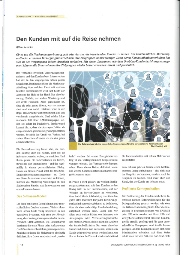 Ob es um die Neukundengewinnung geht, oder darum, die bestehenden Kunden zu halten: Mit herkömmlichen Marketingmethoden erreichen Versorgungsunternehmen ihre Zielgruppen immer weniger. Denn deren Kommunikationsverhalten hat sich in den vergangenen Jahren drastisch verändert. Mit einem Instrument wie dem One2One-Kundenbeziehungsmanagement können die Unternehmen ihre Zielgruppen wieder besser erreichen: direkt und persönlich.